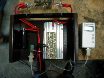 dummy load in the form of two heater spirals. Up to 70Amps can be dumped into